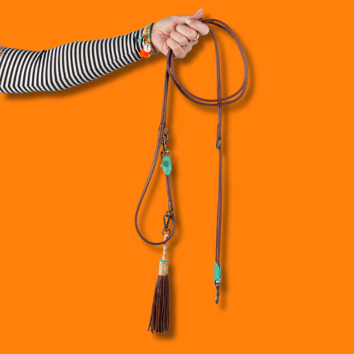 Elegante Lederleine als Accessoire. Die braune Lederleine “Bobby Brown, Extra Long” ist eine wunderschöne Leine in elegantem, dunkelbraun. Diese Leine passt zu jedem Outfit und zu jedem Hund. Die besonders schicke, braun-goldene Ledertroddel sieht aus wie ein Fashion Accessoire und ist das perfekte Fashion-Statement.