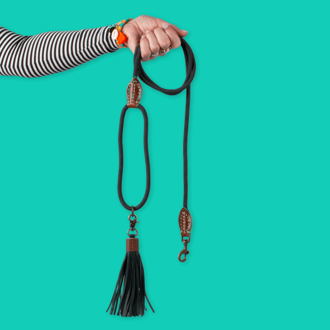 Das satte Grün erinnert an weite, saftige Wiesen und harmoniert wunderbar mit der dunkelgrün-braunen Ledertroddel, die garantiert alle Blicke auf sich zieht. Das dichte, besonders weiche Nylon (Durchmesser 1,0 cm) liegt angenehm in der Hand – auch wenn dein Hund mal kräftiger zieht.