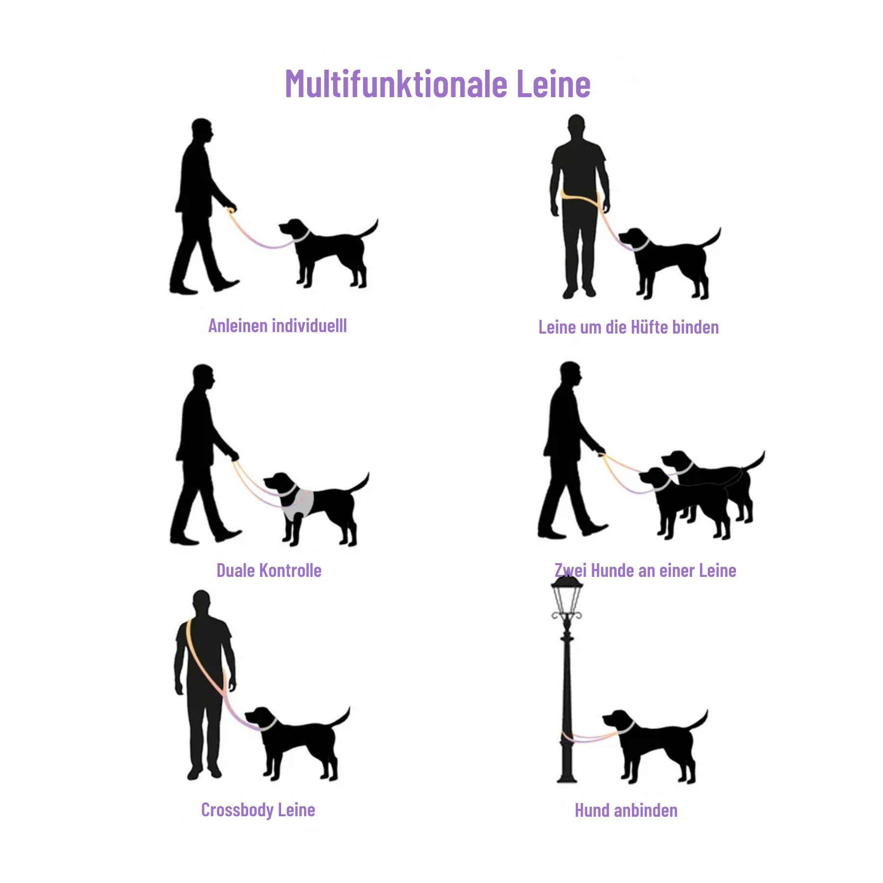 Du liebst es bunt, praktisch und hands-free? Dann ist die doppelseitige Crossbody Hundeleine "Swirl" genau das Richtige für Dich! Mit ihrer einzigartigen Farbverlauf-Optik im Pastell-Design ist sie nicht nur ein echter Hingucker, sondern überzeugt auch mit vielseitiger Funktionalität – perfekt für Spaziergänge, Training oder Stadtbummel.