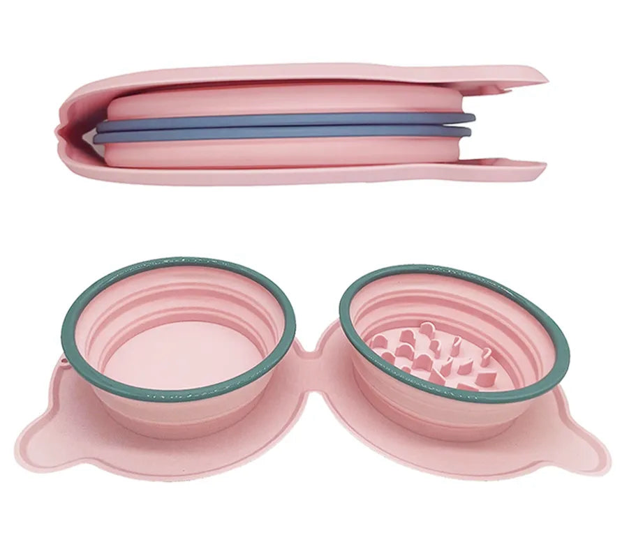 Faltbarer Doppeltes Silikon-Reisenapf „Slow Feeder“