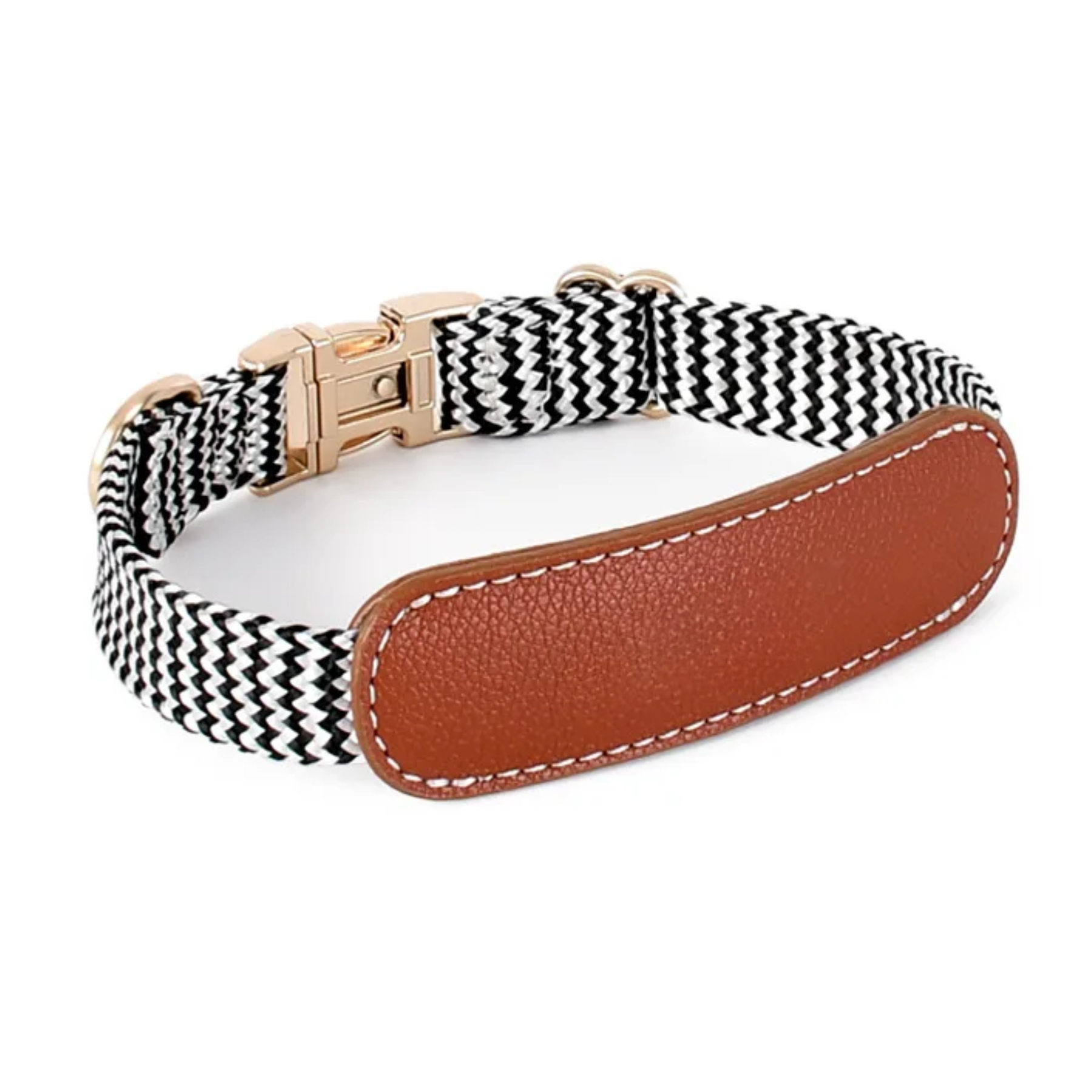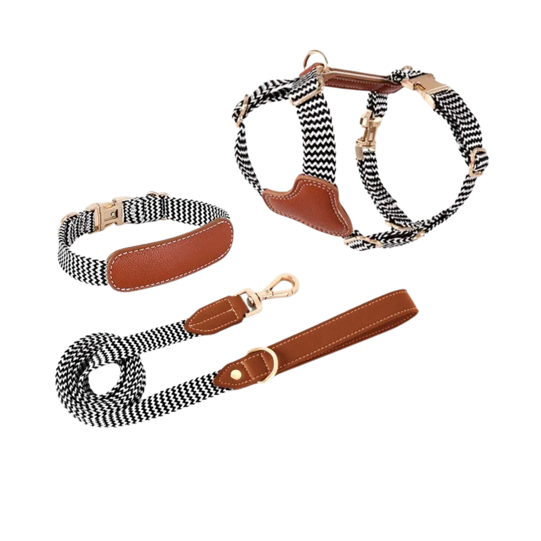 Gestreiftes Nylon-Leder Kombi-Set "ZicZac" - Leine, Halsband, Geschirr