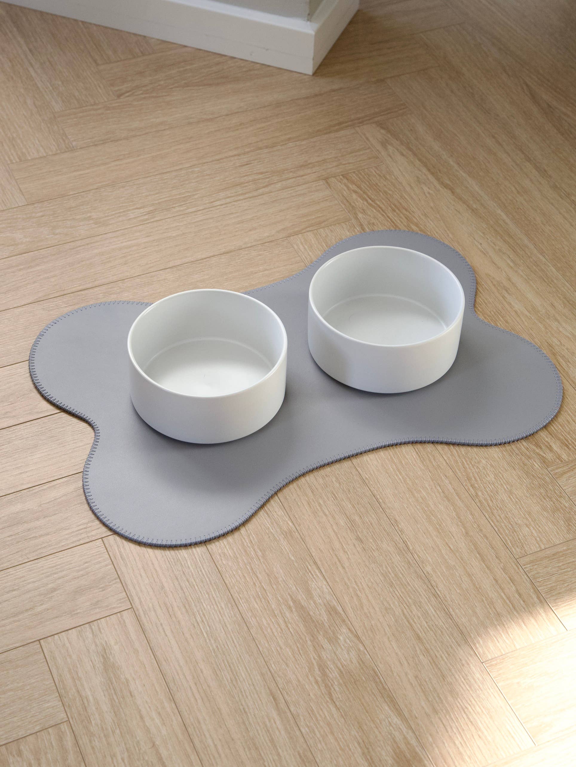 Mit seiner stylischen Knochenform und den Maßen 50 x 35 cm passt es ideal unter Futter- und Wassernapf – ganz gleich, ob dein Vierbeiner klein oder groß ist.